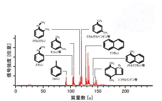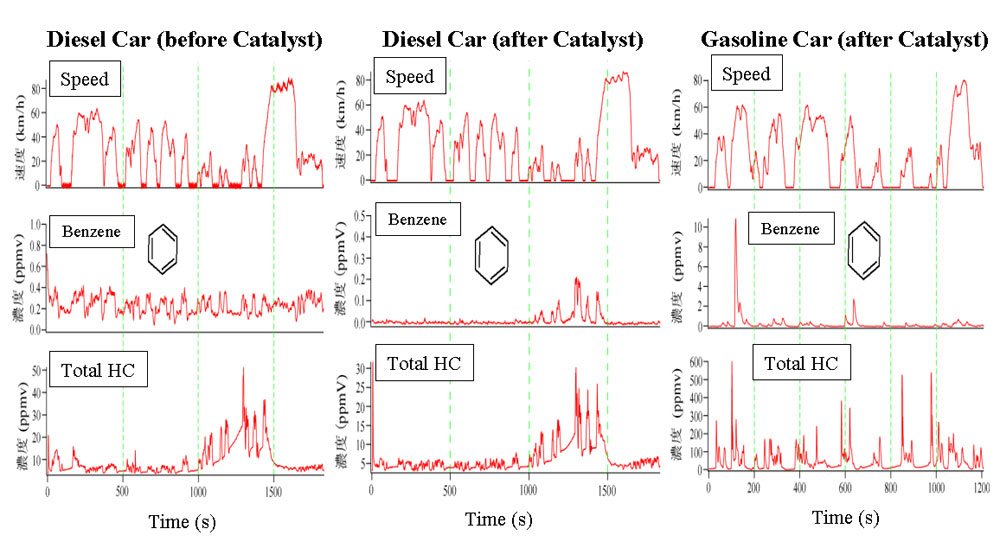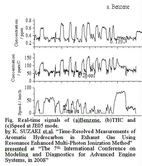 Data from car exhausts analysed using Jet-REMPI TOF-MS