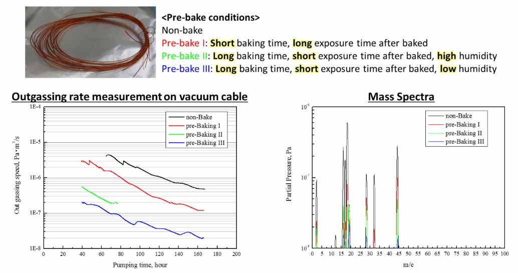 Measurement of the outgassing performance of vacuum compatible cables under different pre-bake conditions